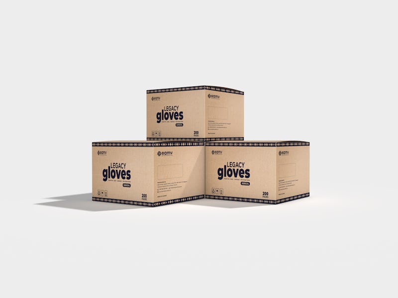 We developed a system around this symbol within the logo to a simple pattern applied across various brand elements. The variety in colour usage facilitates interpretation and differentiation of sections within the brand operations. The developed brand system is extensively used at the EAMV plant to differentiate product lines, with over 3,000,000 gloves produced monthly.