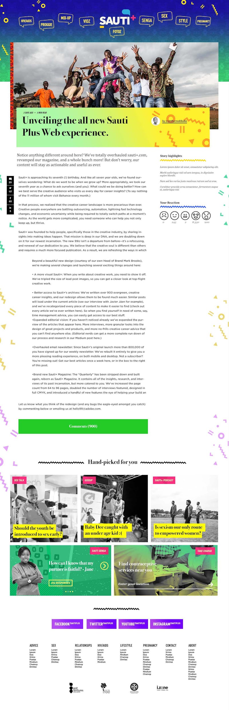 Sauti Plus is a campaign designed by Reach A hand Uganda to embrace digital media to address sexual reproductive health, rights and issues affecting the young people. The overhauled Sauti Plus website embodies the latest cutting-edge innovation to provide a rich visual experience for users across mobile and desktop platforms.