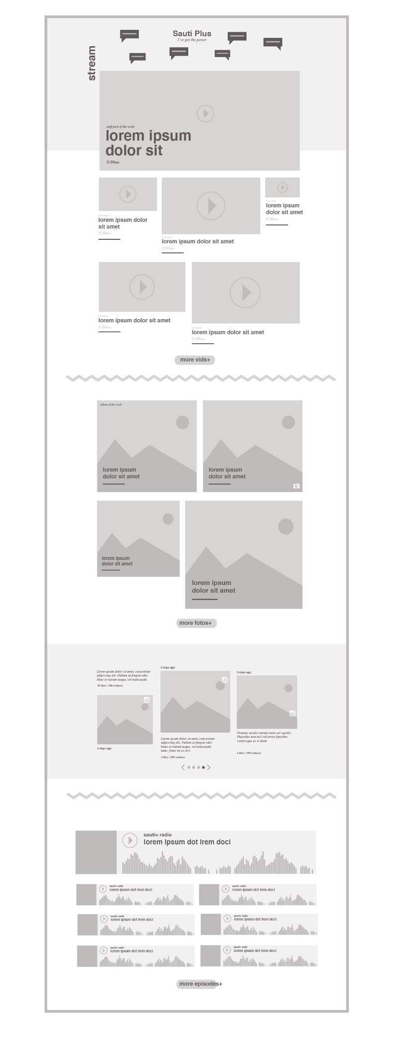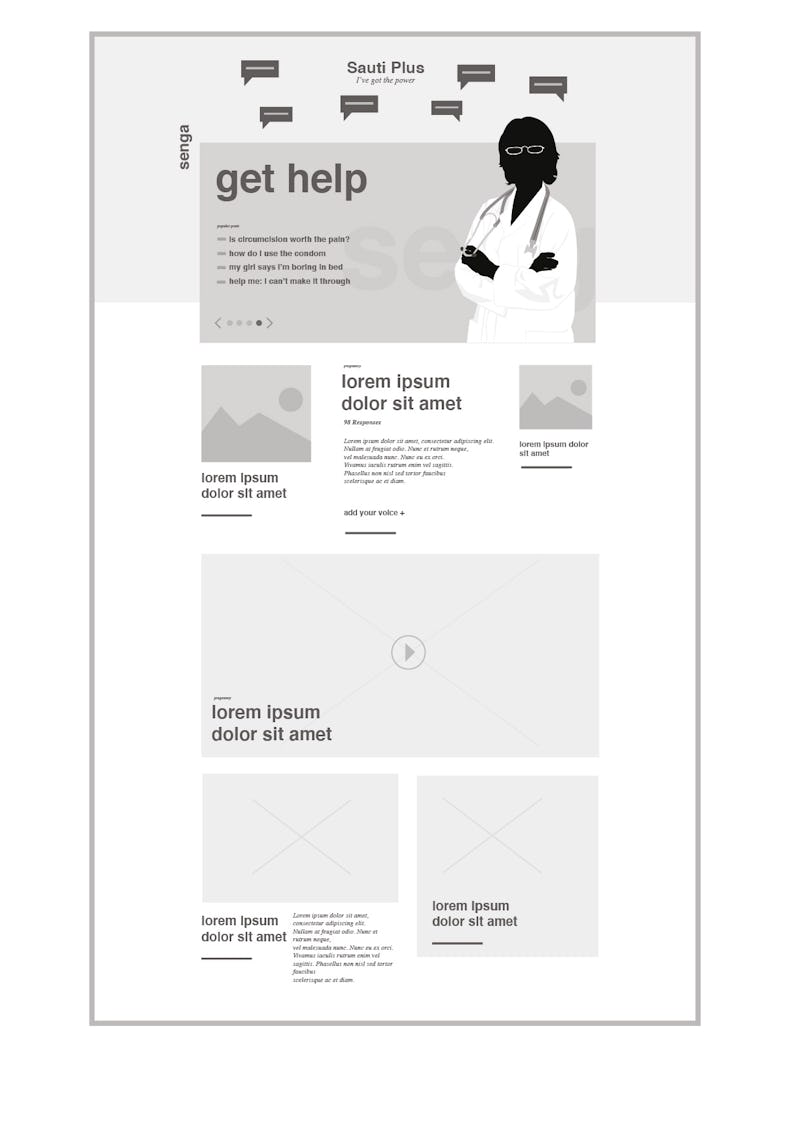 The information architecture of the Sauti Plus website is centred around the key content areas of the portal. The layout templates follow a grid pattern that scales gracefully across devices.