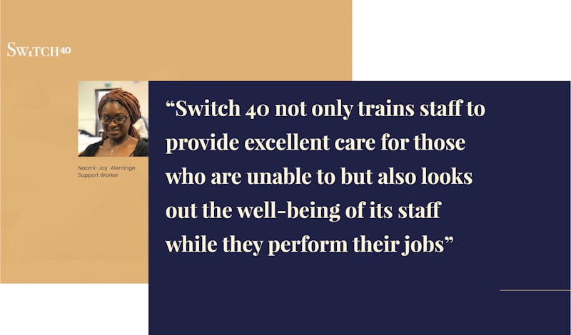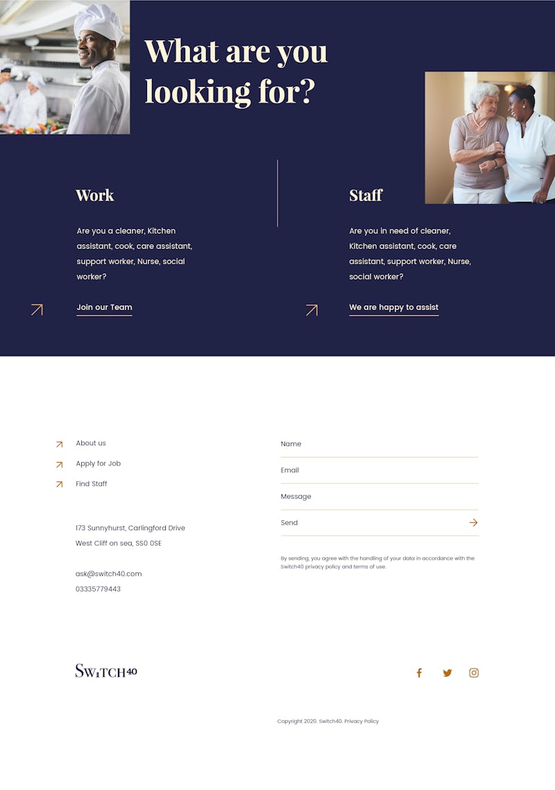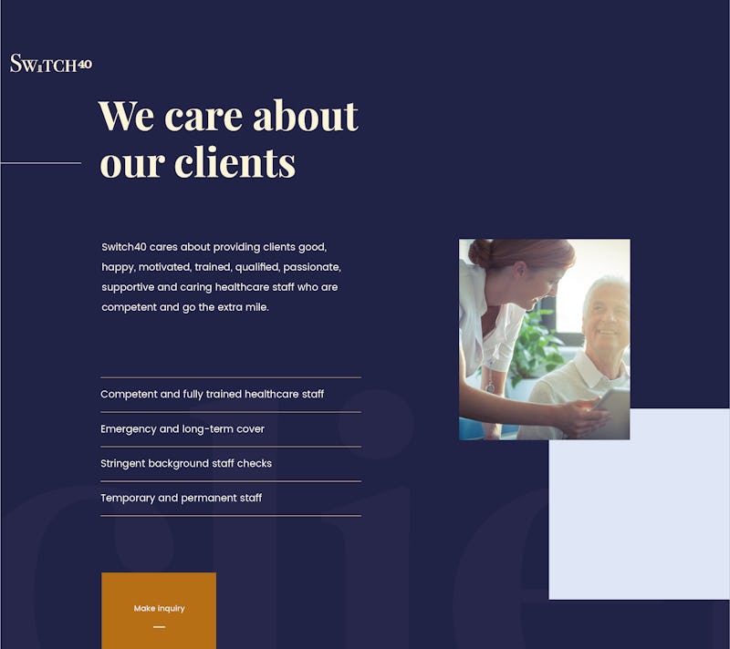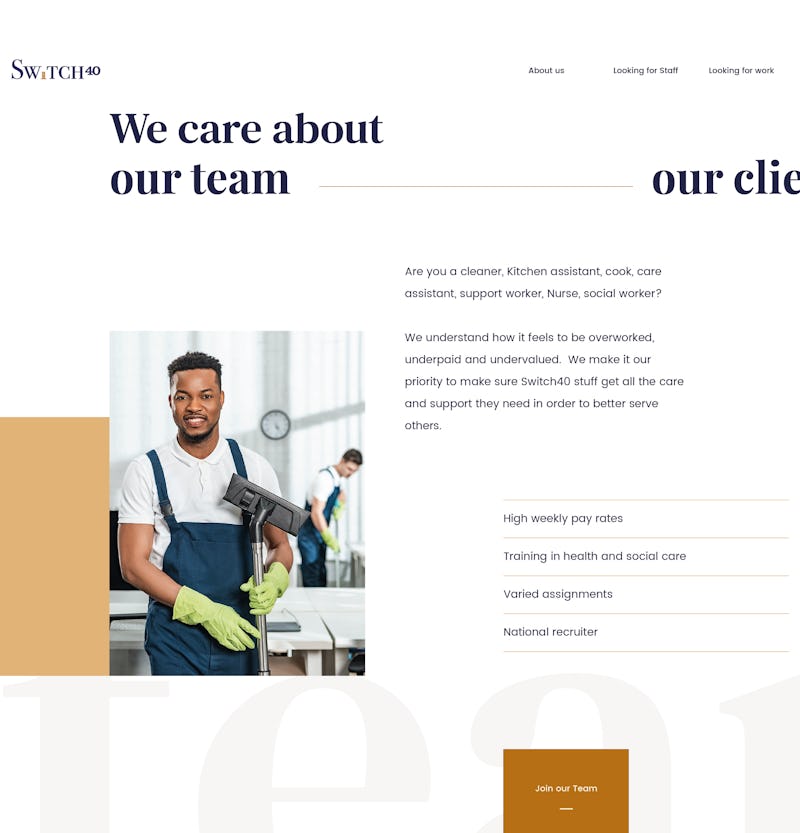 The website features a bespoke design layout built to focus on what Switch40 offers. The navigation structure is easy to use and the choice of colors, typography aligns closely with the vision for the brand.